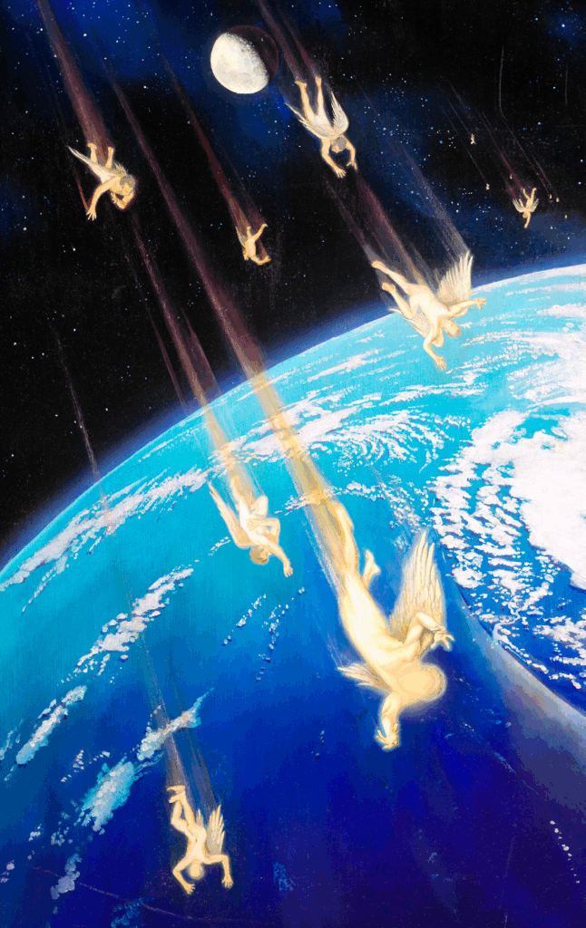Satanás miró la gloria y la majestad de Dios y dijo en su interior: ya no quiero ser más un servidor, no quiero ser un ángel, quiero ser como Dios. El dragón logró atraer para sí un tercio de los ángeles, pero no consiguió levantar su trono en el cielo y recibir adoración celestial como la recibe Dios. Fue echado del cielo junto con sus seguidores, y de esa forma Dios frustró sus aspiraciones.